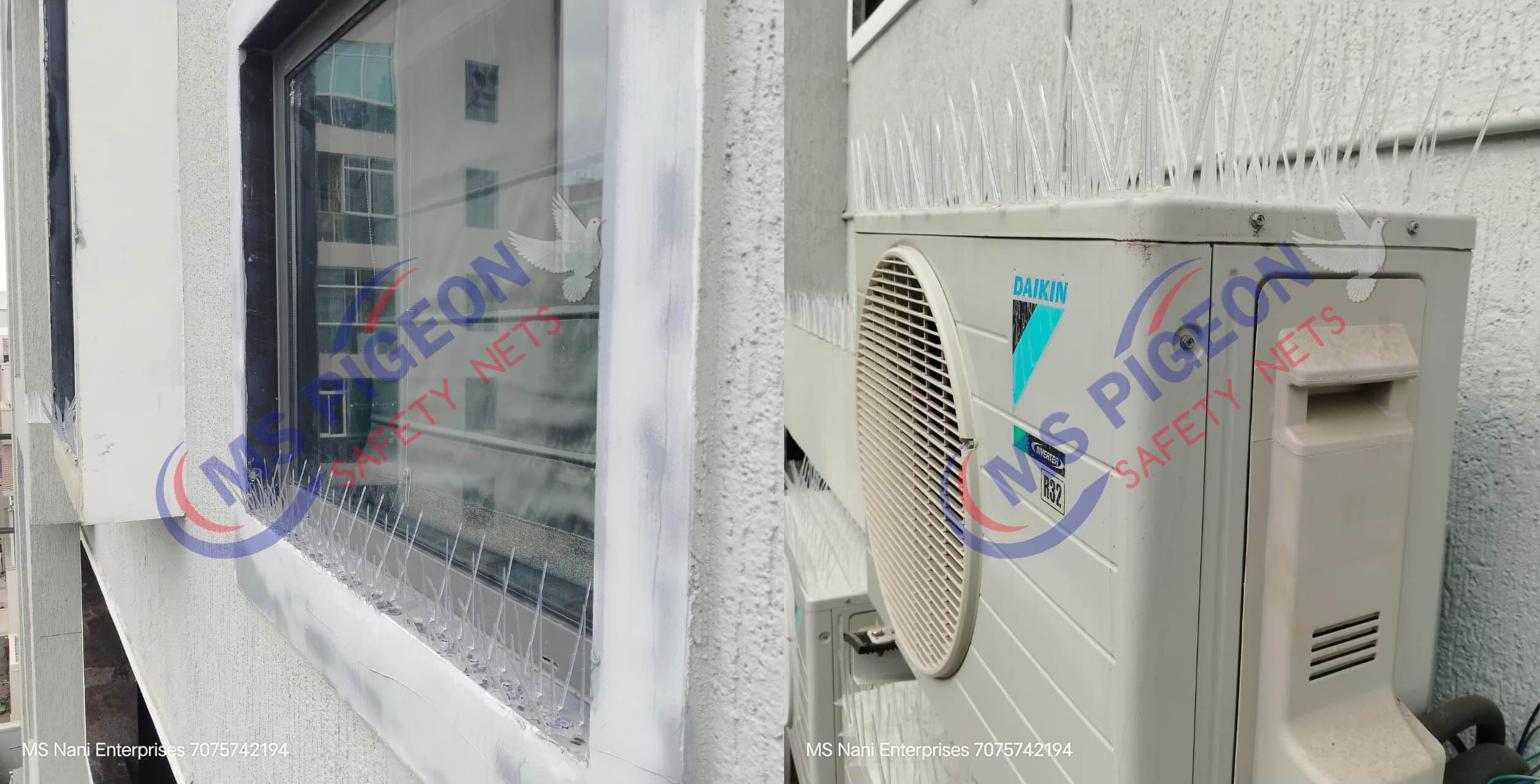 Bird Spikes & Netting is best option based on the Outdoor unit location in your building, we will guide which ever suits best either Bird Spikes OR Netting